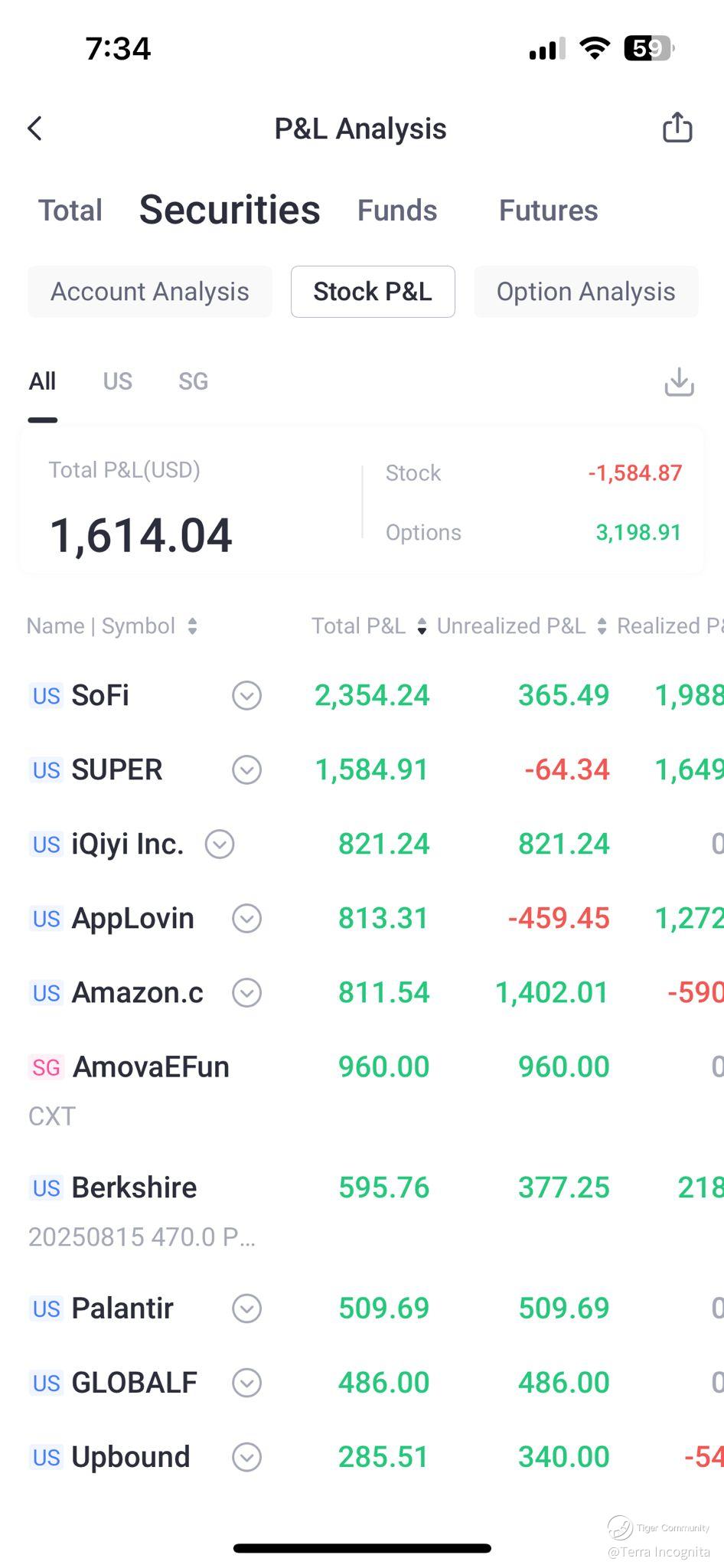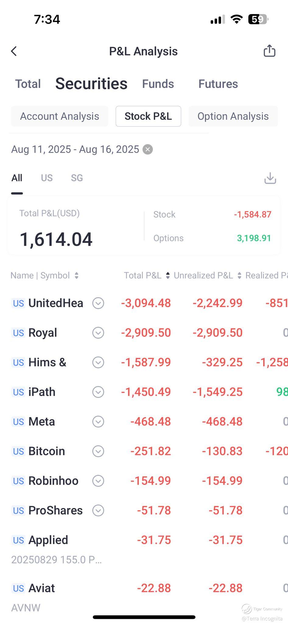 SoFI continue to be my top consistent performer while positions in healthcare stocks UNH and HIMS were hurting.
