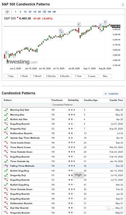 The candlestick patterns suggest a bearish short-term outlook for the coming week, with a bearish long-term outlook, indicating the S&P 500 is in a correction phase following its recent high, with potential for further downside unless a bullish reversal emerges at key support levels.