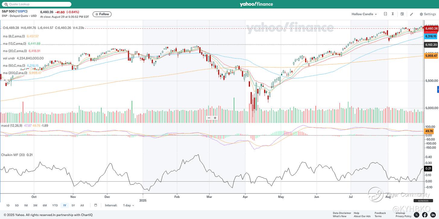 • Short-Term Outlook (September 1–5, 2025): The S&P 500 is likely to continue its bearish trend into the coming week, driven by the Evening Star and Bearish Engulfing patterns. The price could test support at 5,345.01 (early 2025 low) or drop further to 5,300 if selling pressure intensifies.