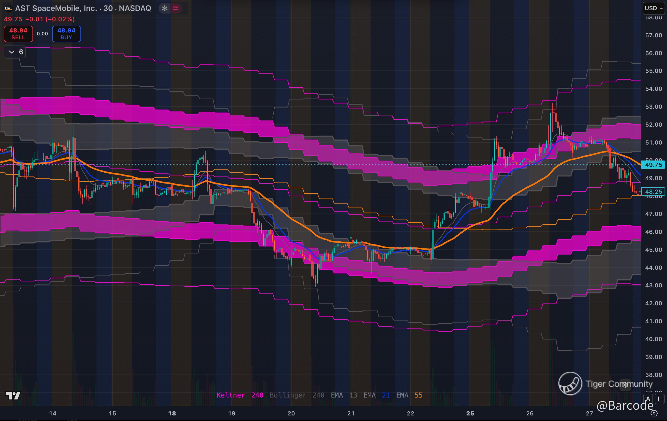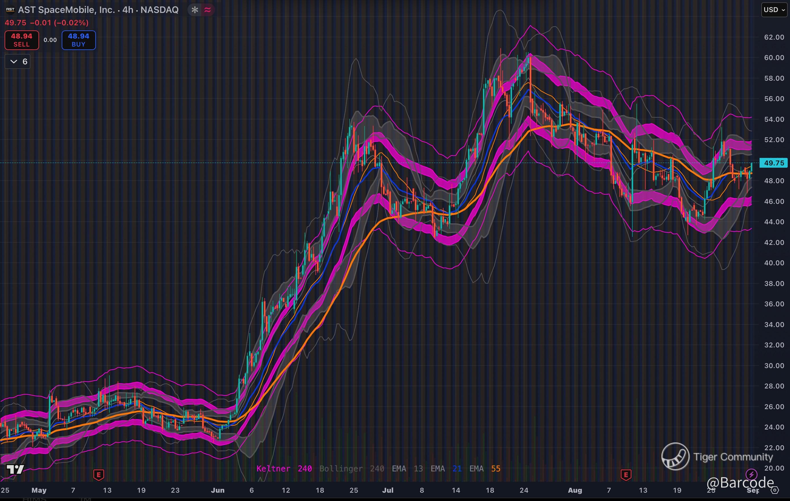 β’ Stop-loss: $46 (below flag base and EMA cluster).