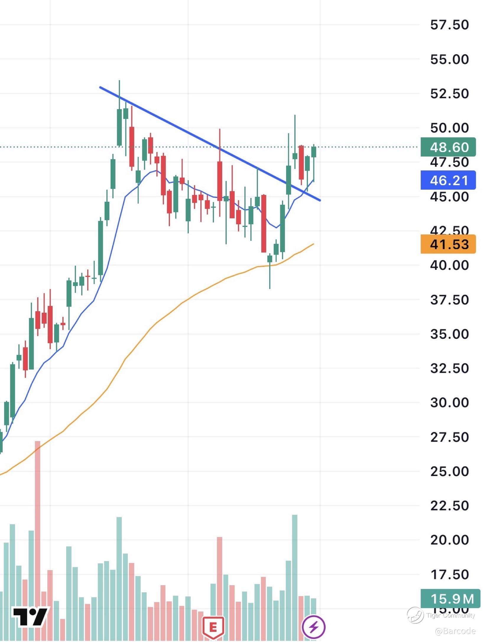 β’ Technicals: Bull flag breakout, support $46, resistance $50β$52.