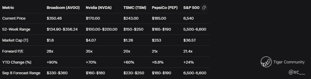 • Options Kick: Buy $375 AVGO calls or $160 NVDA puts (September expiry) for 150-200% gains on a 5% move.