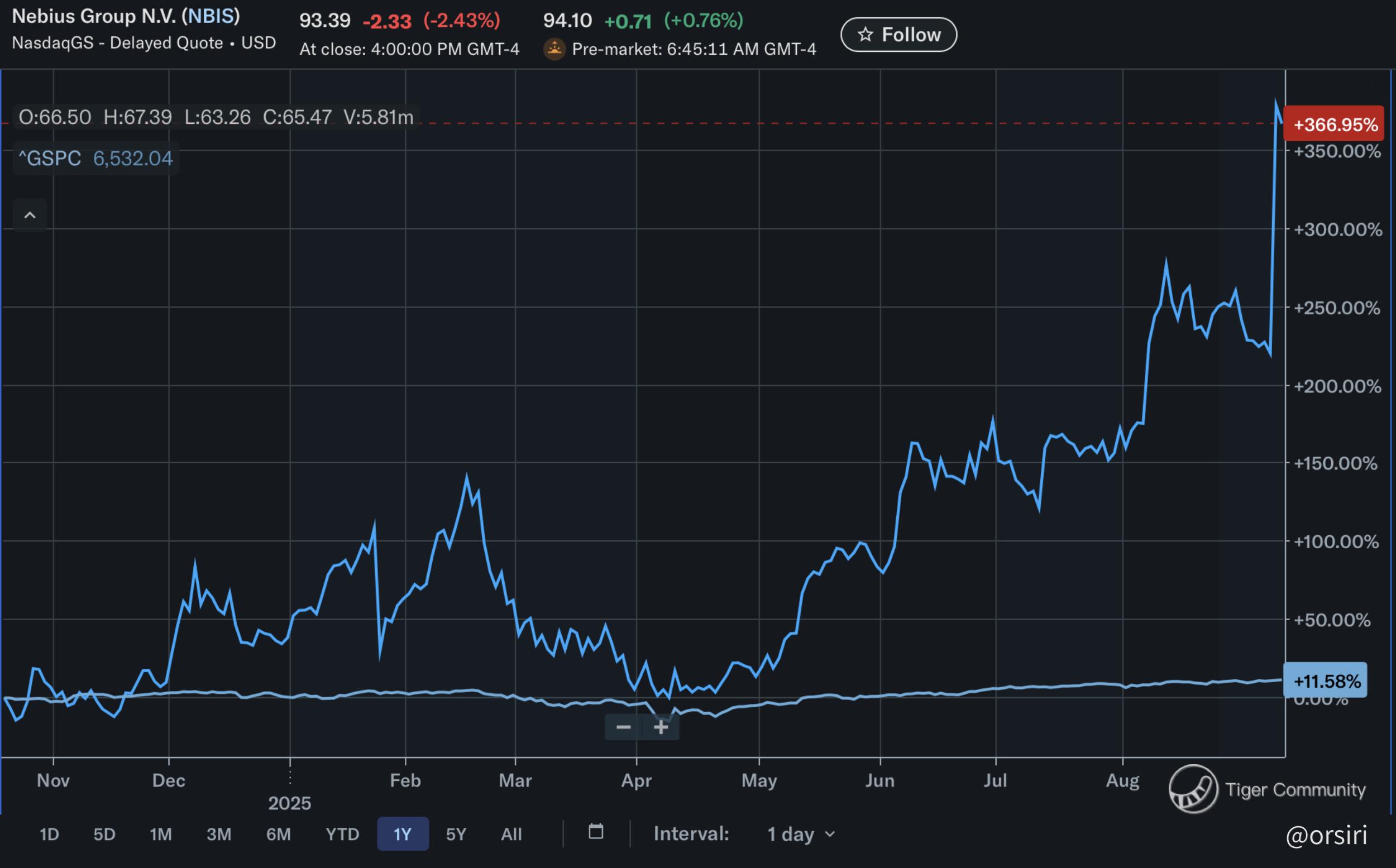 Nebius rockets while the S&P strolls — momentum with altitude risk