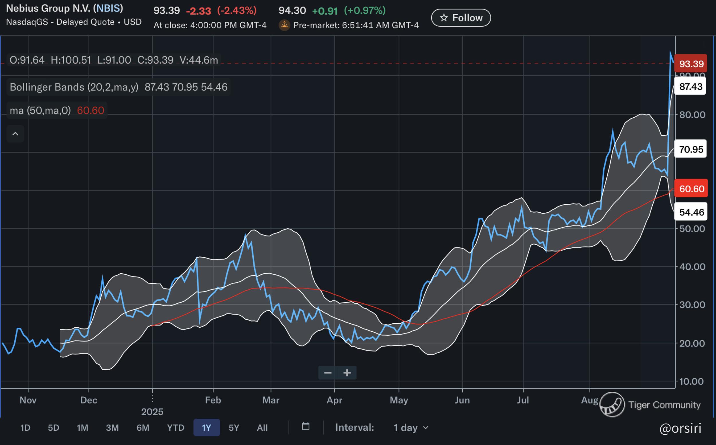Volatility stretches the bands, but Nebius keeps hugging the upside