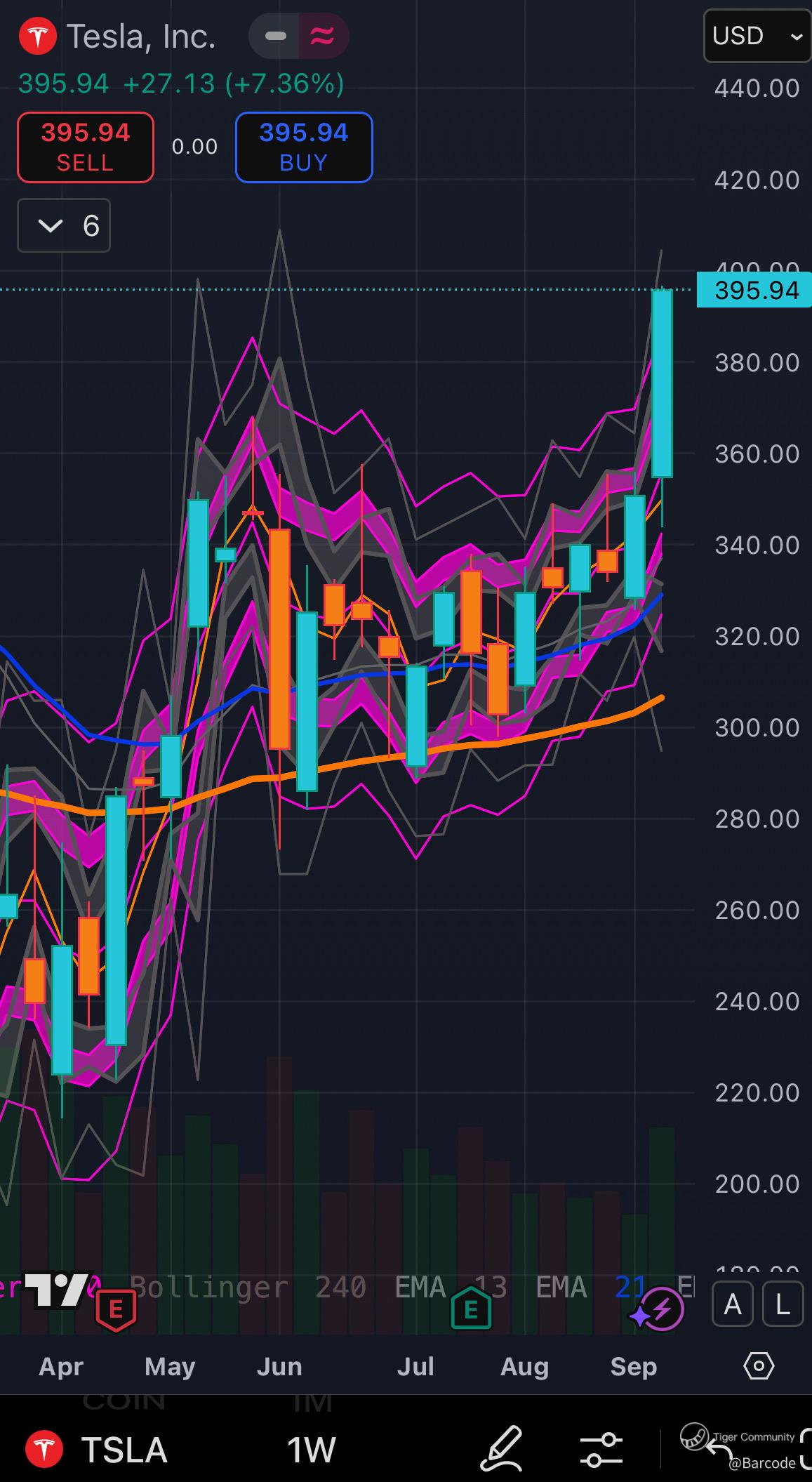 I’m convinced $TSLA just flipped the script. The $45 bounce this week confirmed bullish momentum. Price ripped through the CHoCH zone with a god-candle at $395.94, breaking the supertrend and shifting character fully bullish. Red-marked resistance sits at $420–$440 and may bring turbulence, but I see it only as a threshold before the real rally. Institutional buying confirms the Easy Money Era has started!