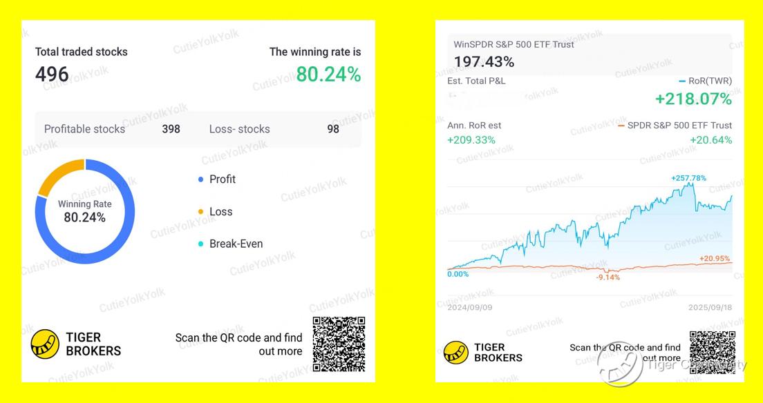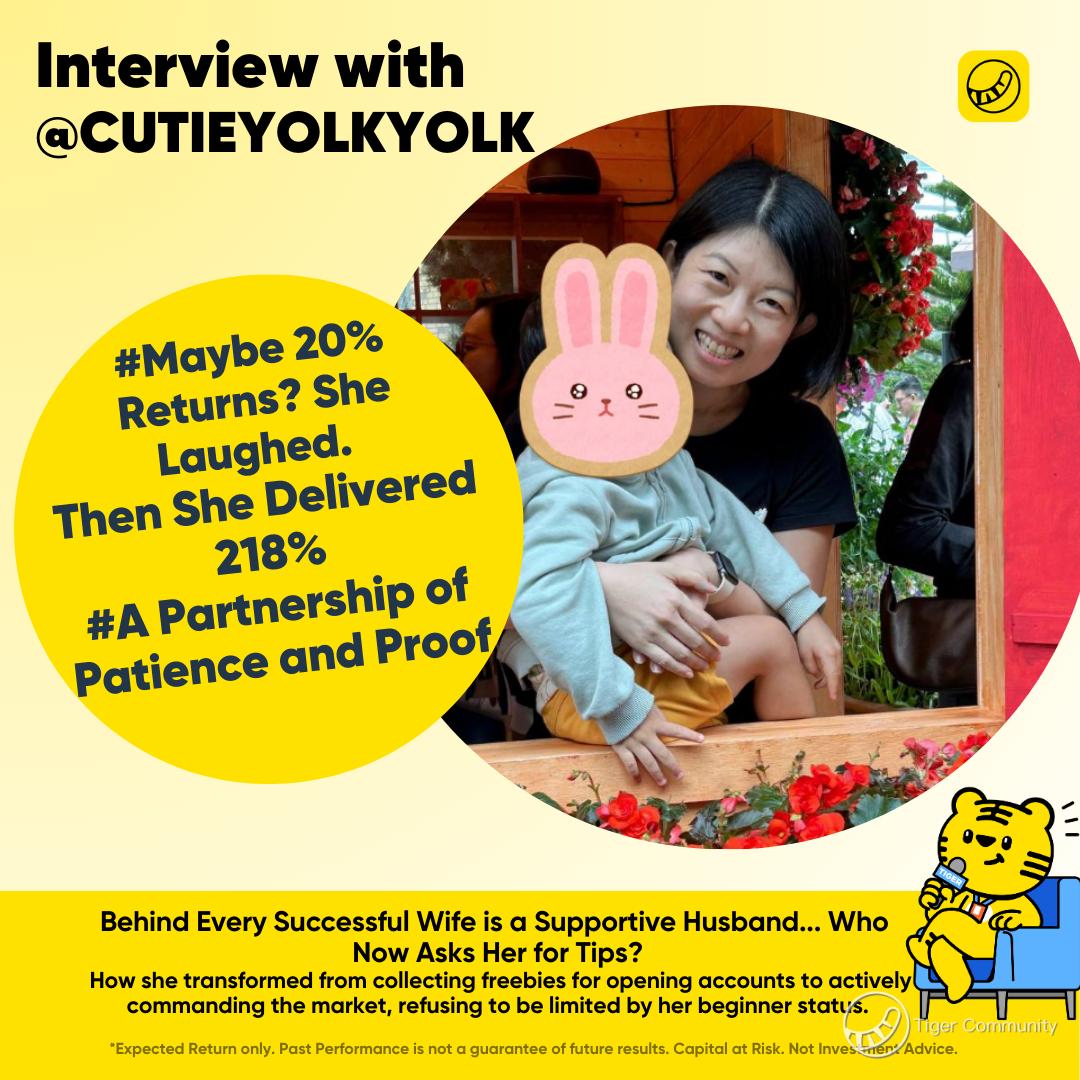 Meet @CutieYolkYolk — a star contributor in the Tiger Community. — Meet CutieYolkYolk: the self-proclaimed "regular folk" investor who shattered every expectation, including her own. Just over a year ago, she was the queen of conservative investing, with her portfolio safely parked in dividends and savings accounts. Today, she’s the Tiger Trader who transformed a modest SGD $20k "tuition fee" into a staggering 218% return, turning her mentor—her own husband—into her biggest fan.