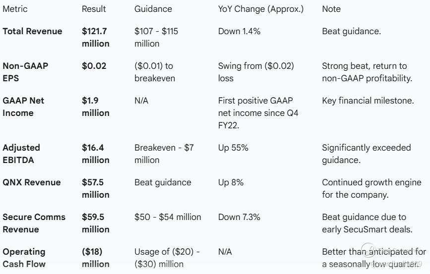 BlackBerry reported a strong quarter that exceeded its guidance across key financial metrics, driven by solid execution in its core software divisions.