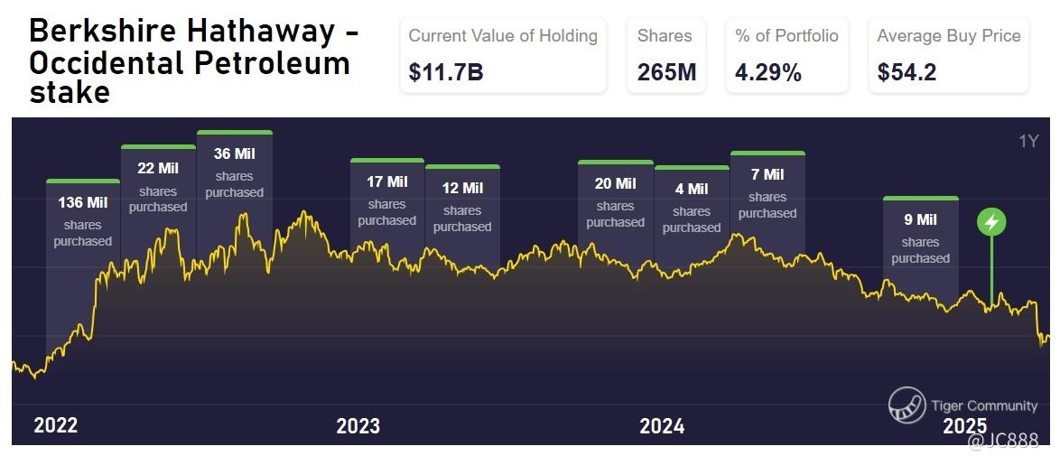 As of end June 2025, BRK.B owned more than $11 billion worth of OXY (or a 28.2% stake).