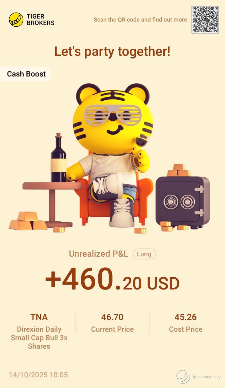 $Direxion Daily Small Cap Bull 3x Shares(TNA)$ 's small-cap leverage = adrenaline rush! Caught the rebound but swings are wild. Leveraged products aren't for holding - profits in pocket feel safest!