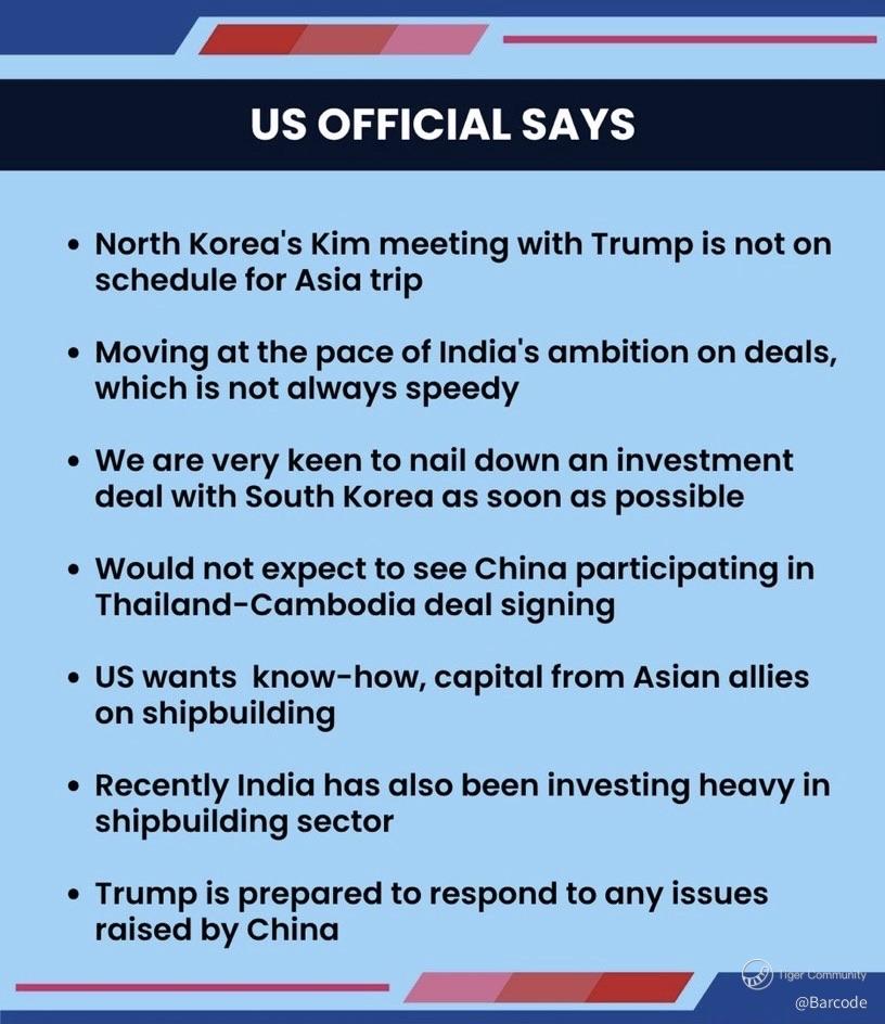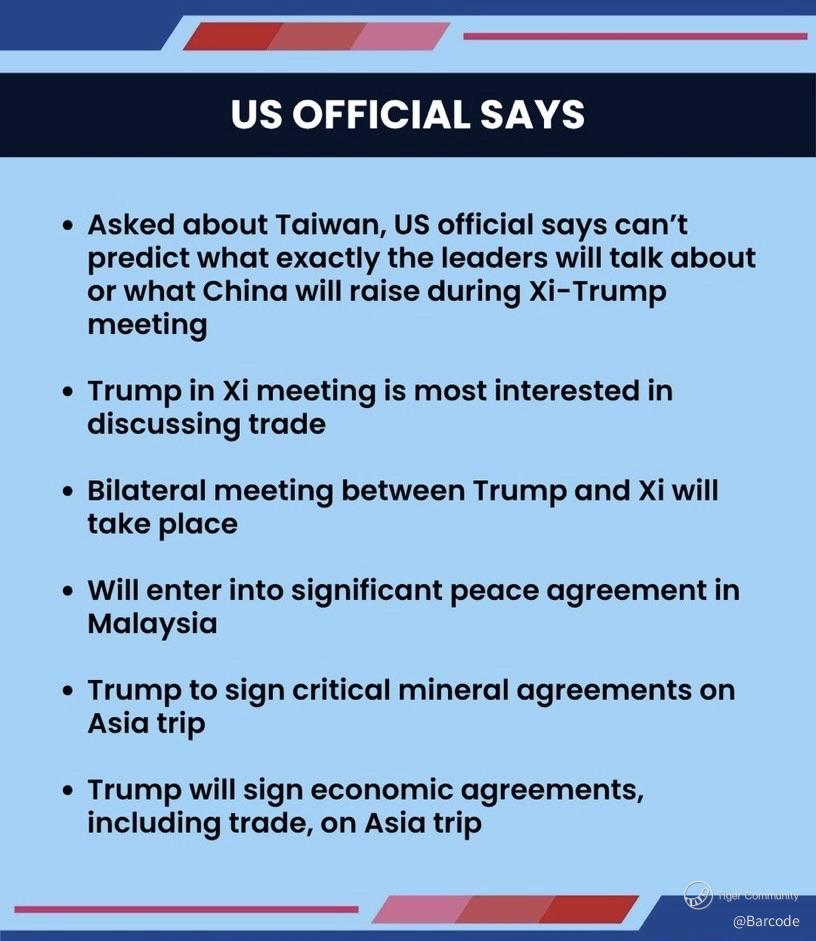 • The Trump–Xi bilateral is confirmed for 30 Oct in Gyeongju, focusing on trade, tariffs and supply-chain recalibration.