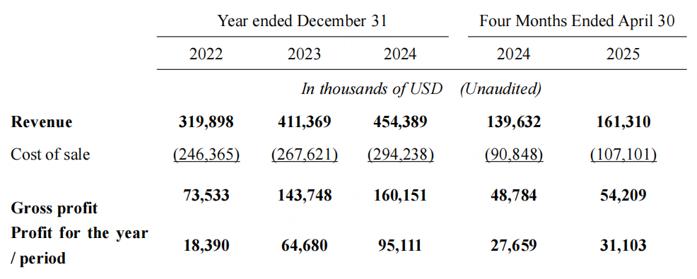 First four months of 2025: Revenue US$160 million (+16% YoY), Net profit US$31.1 million (+12% YoY)