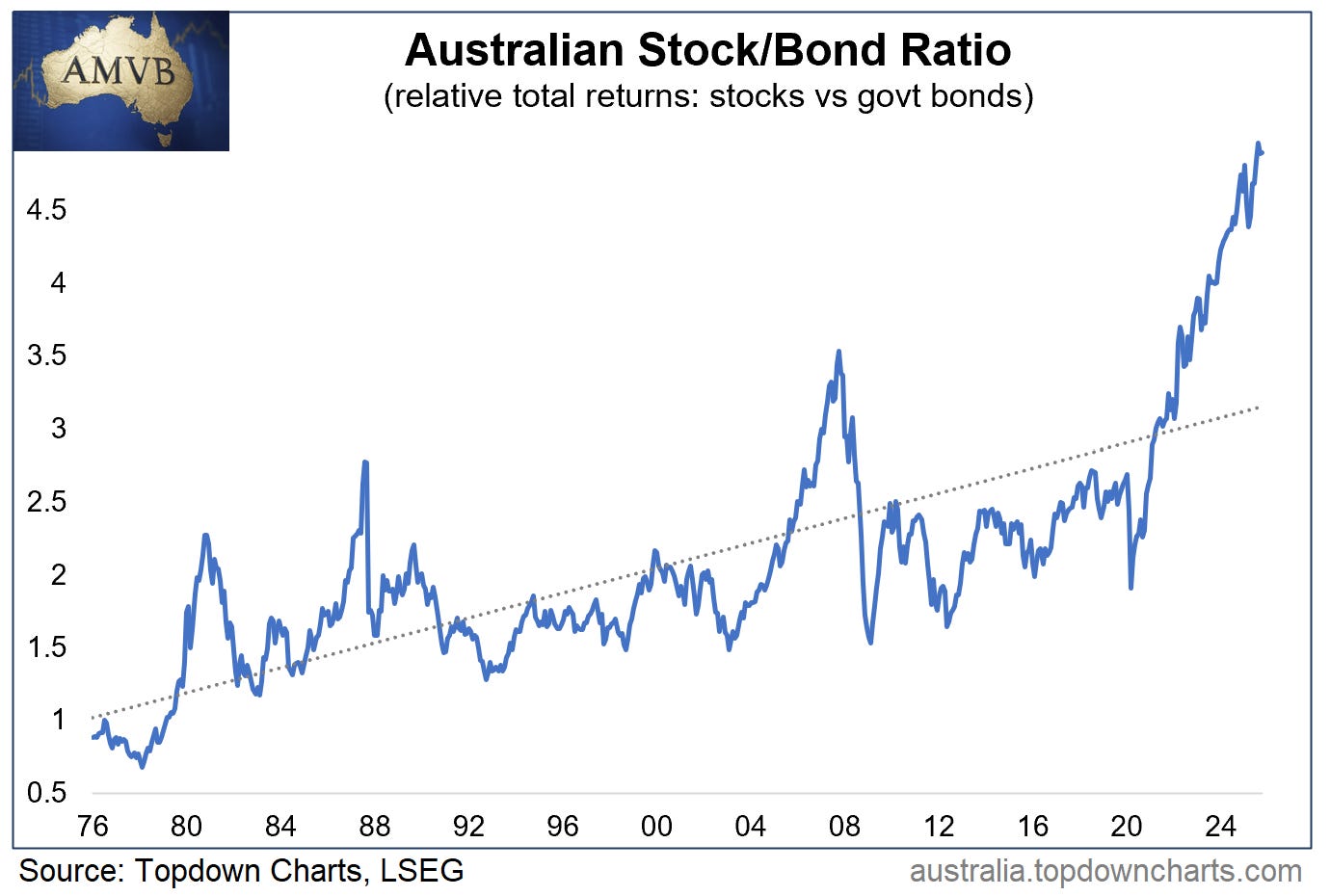 Key takeaway: The Australian stock/bond ratio is at historical extremes, and warrants monitoring as relative value moves in favor of bonds.