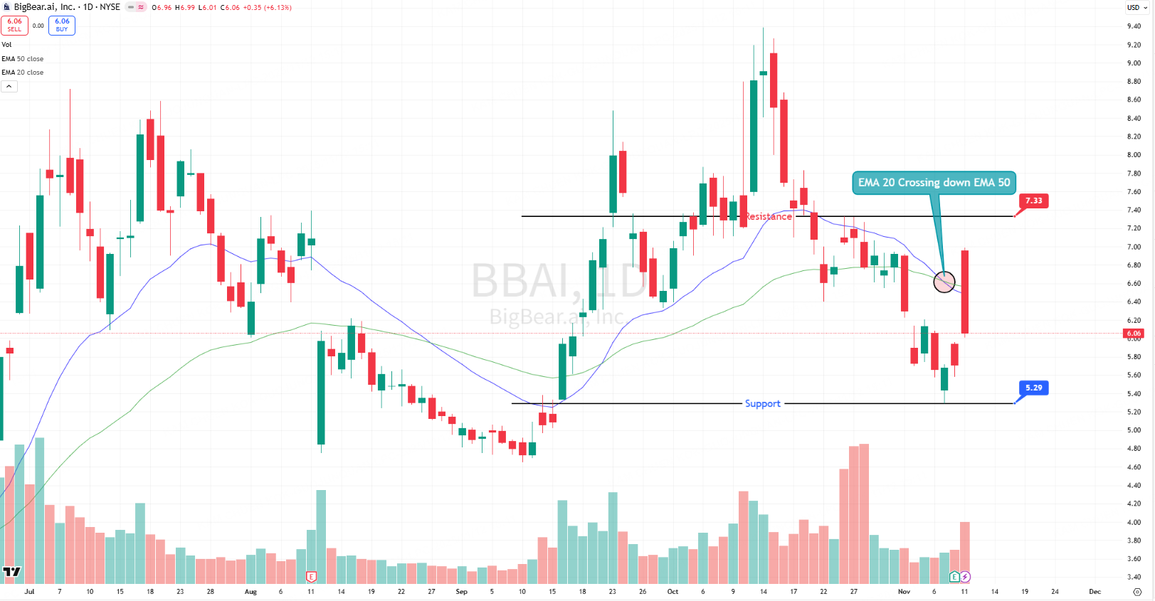 BBAI is a high-beta AI/defense play, sensitive to U.S. tech sentiment and contract news flow. Volatility may remain elevated; traders should manage position size accordingly.