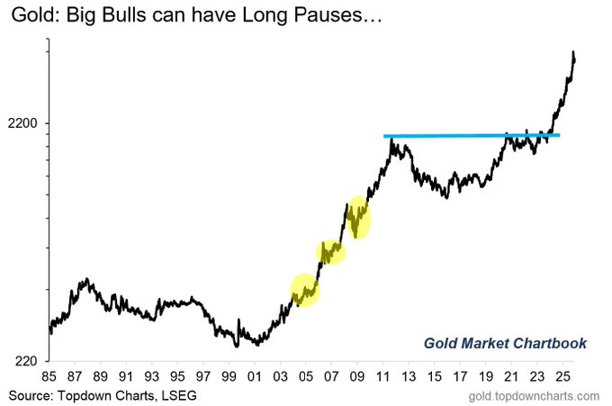 It's entirely normal for big gold bull markets to have long pauses, and if anything the entire up-move in gold almost only happens over a few key weeks and days... $Gold - main 2512(GCmain)$