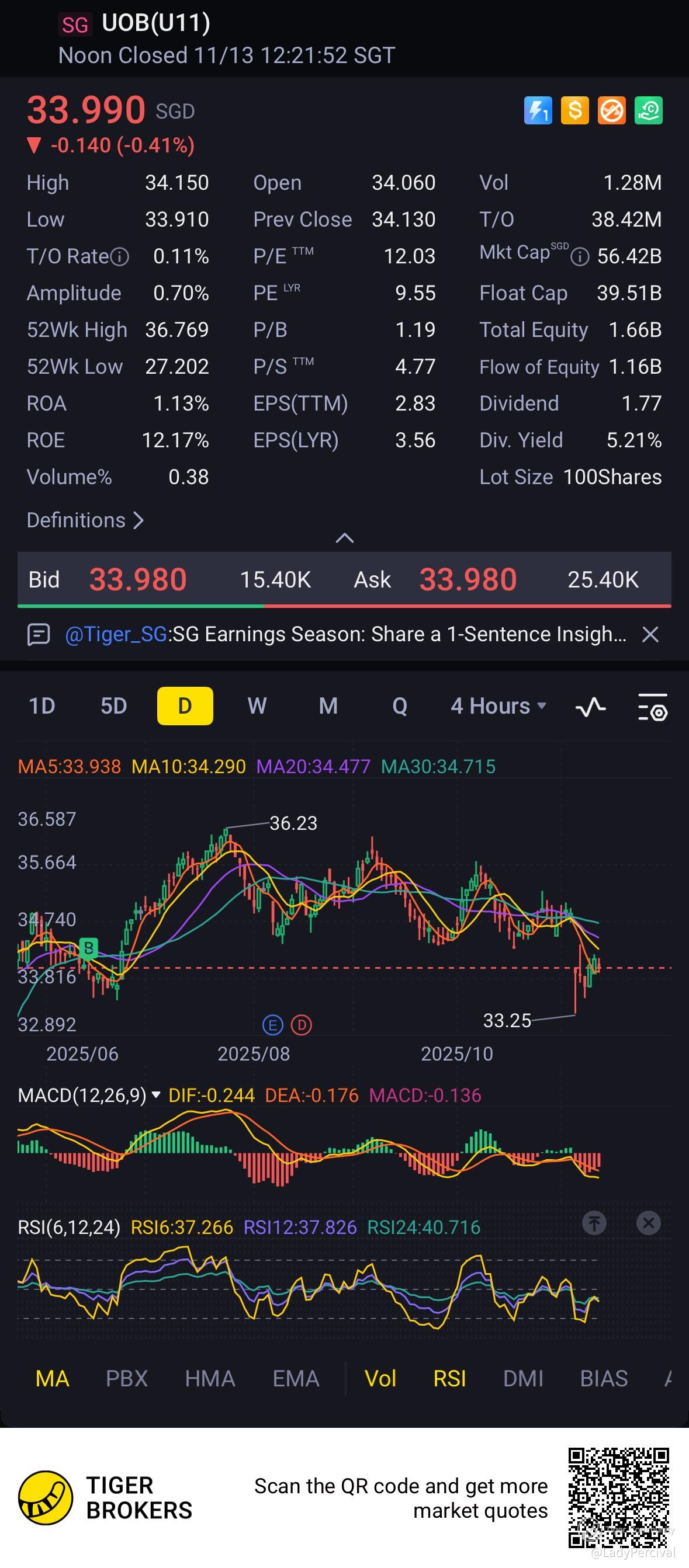 $UOB(U11.SI)$  remains as a solid stock for long term hold despite disappointing Q3 earnings. Just hold on.