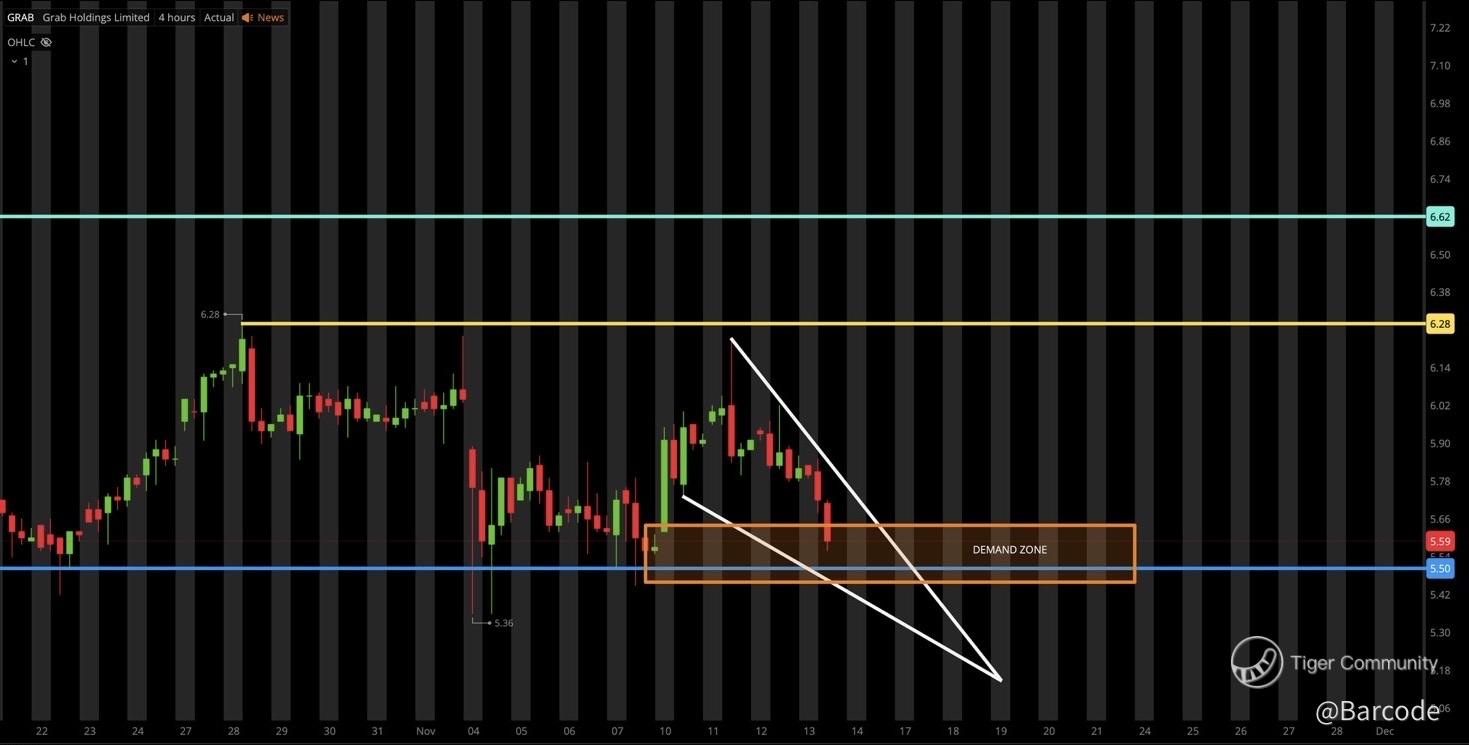 $Grab Holdings(GRAB)$ $Uber(UBER)$ $DoorDash, Inc.(DASH)$ π₯ππ GRAB Falling Wedge, Energy Loading πππ₯