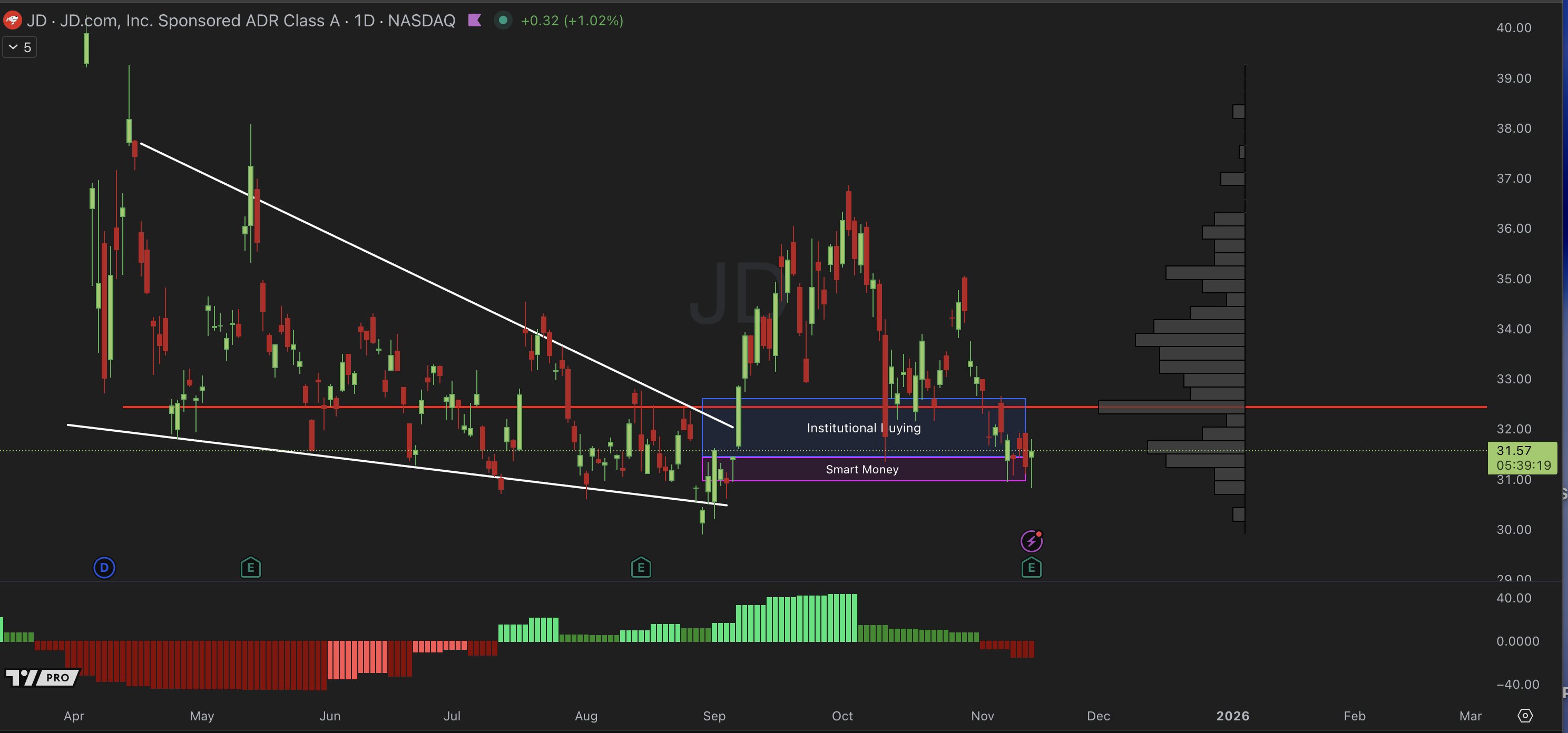 JD only up 1% after earnings, but the smart money zone held perfectly.