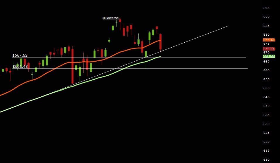 SPY doesn't like to sit under 50SMA too long. Last time it went other it bounced for 4 days straight from $661-$684. SPY demand zone right now is at $661-$662 area again. So I'd be patient and watch for buyers on 1HR and 4HR time frames.