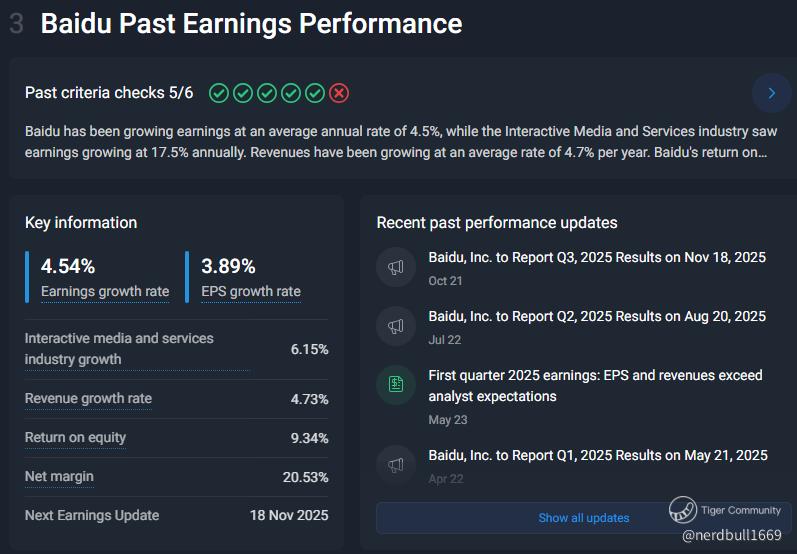 $Baidu(BIDU)$ is scheduled to report its Q3 2025 financial results before the U.S. market opens on Monday, November 18, 2025.