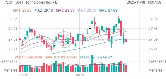 Core Market Drivers: Q3 earnings momentum fading as "growth expectations already priced in" creates cautious sentiment; crypto trading launch timeline and SoFi USD stablecoin projected for H1 2026 provide long-term catalysts but limited near-term impact on valuation pressure.