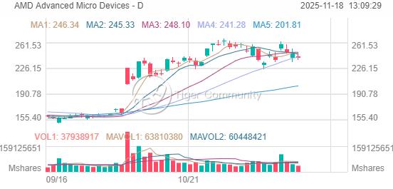 $Advanced Micro Devices(AMD)$ closed at $240.52 (-2.55%), retreating from recent highs near $267.08, currently sitting about 10% below its 52-week peak as post-Analyst Day momentum begins to cool.
