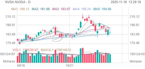 $NVIDIA(NVDA)$ closed at $186.60 (-1.88%), down from Friday's $190.17, extending its decline to 12.1% from the recent peak of $212.19, signaling continued weakness ahead of crucial earnings.
