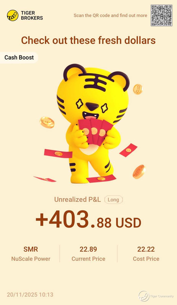 $NuScale Power(SMR)$ 's small modular reactor play paying off! US clean energy initiatives creating solid tailwinds. Holding for more upside~ Perfectly timed with the Contra688 offer - those Cash Boost vouchers made entry even better. Smart trading with free credits!