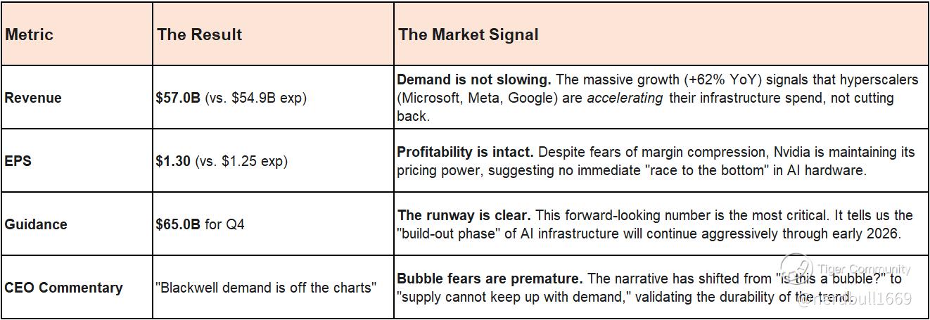 Nvidia’s Q3 earnings (reported November 19, 2025) serve as a critical "green light" for the market, effectively dispelling recent fears of an AI bubble. Here is the deciphered signal and outlook through year-end 2025.