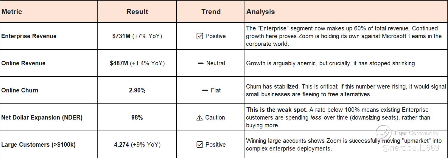 Bull Case: Any uptick back toward 100% would be a massive bullish signal that cross-selling (Zoom Phone, Zoom Contact Center) is finally working.