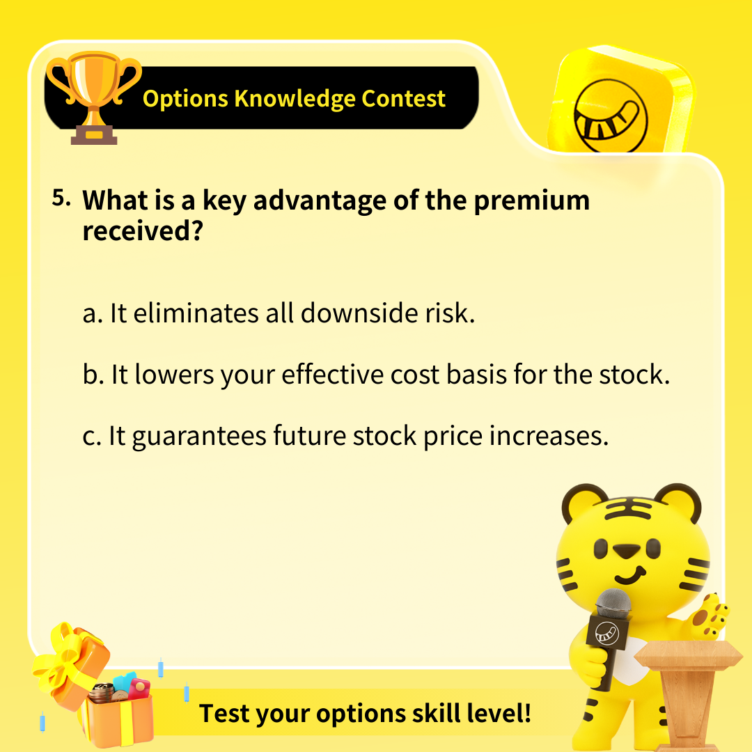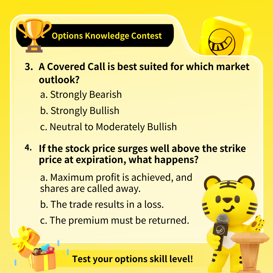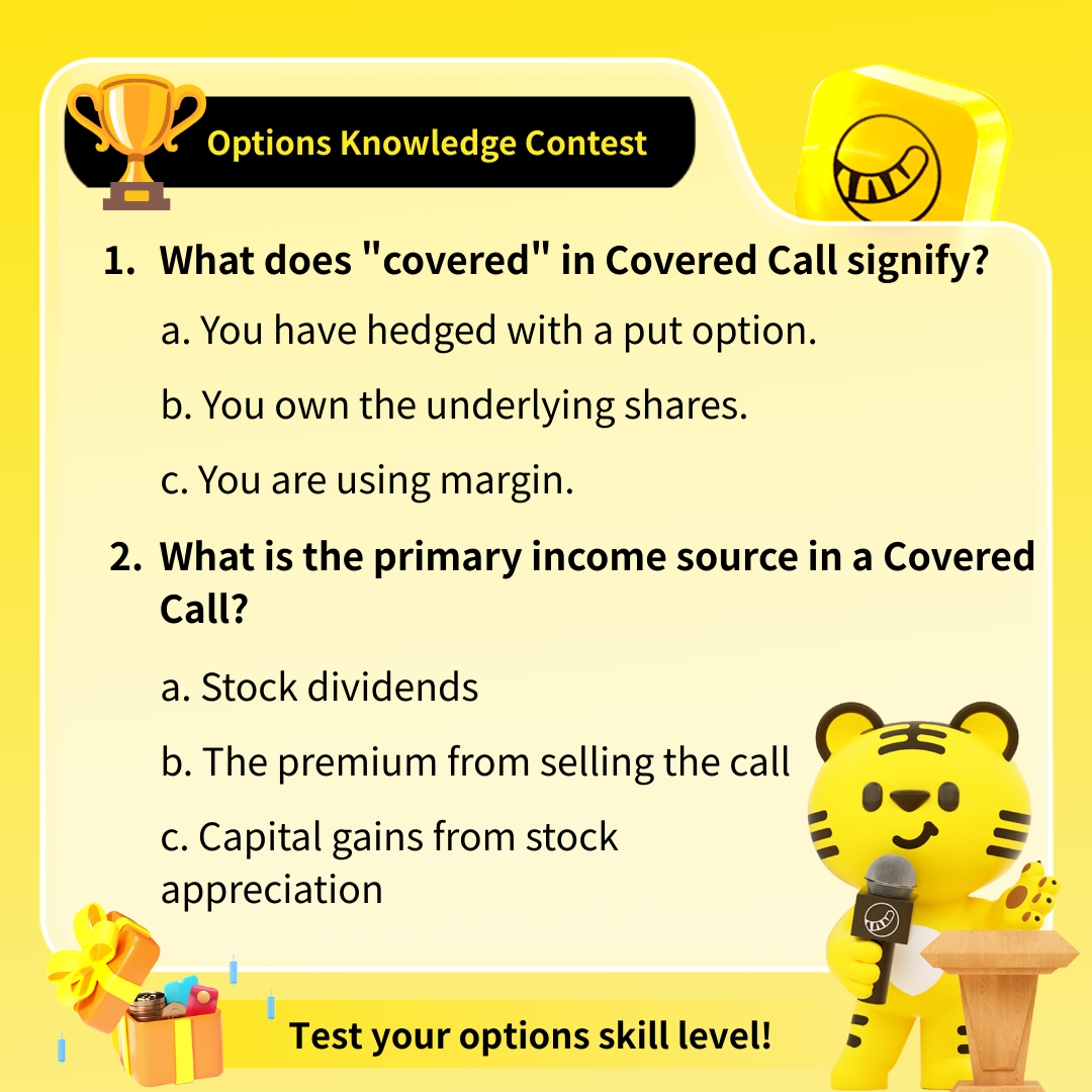 Ready to apply what you've learned? Answer these 5 quick questions about Covered Calls! Join the quiz below to solidify your options knowledge and stand a chance to win Options Handbooks and USD 5 options vouchers.