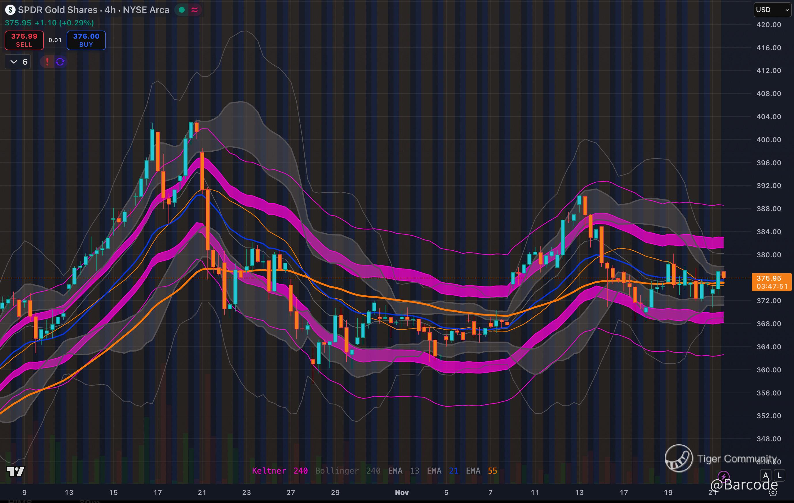 The 4H chart work adds confirmation. Keltner and Bollinger compression has tightened into a classic coil, EMAs have flattened, and buyers continue to defend the 370 to 372 zone on $GLD and 4020 to 4050 on GC. Every probe lower is being replenished with controlled flow, not fear driven liquidation. This is how defensive allocation rotates in ahead of volatility breaks in equities and crypto. Add in central bank reserve accumulation and expanding global liquidity, and the structural tailwind remains intact. Some of the top desks are now projecting 20% upside into 2026 if policy softens.