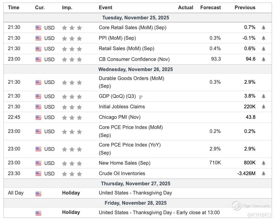 Economic Calendar: Key Market Movers (week of 24Nov25)