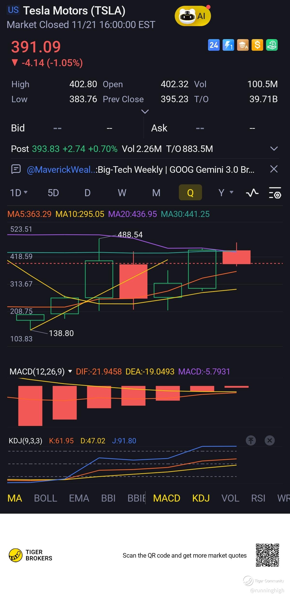 Short term, maybe down to circa $360 (hopefully). Mid term, say by Mid Dec 25, recovering to $440 ish. End of year/ mid Jan 26 anywhere between $440 and $525 depending on Robotaxi ramp/ Semi production news. But I’m no oracle on this matter!