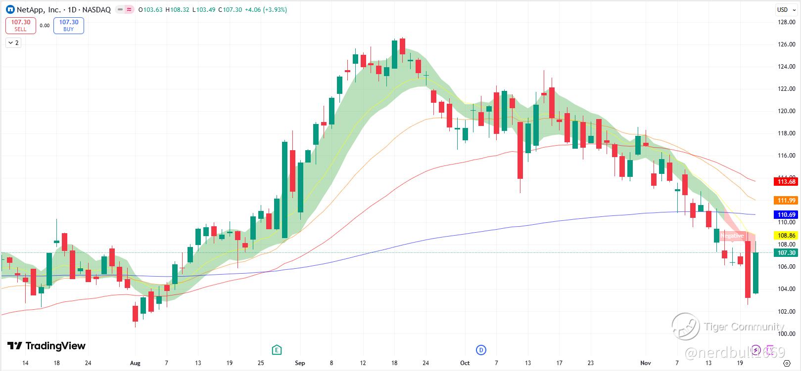 We are seeing how NTAP stock price performance have been affected by the recent AI bubbles narrative as well as broad market selloffs, and NTAP is now trading in a negative RSI momentum, and the share price is trading below the 200-day period on daily chart.