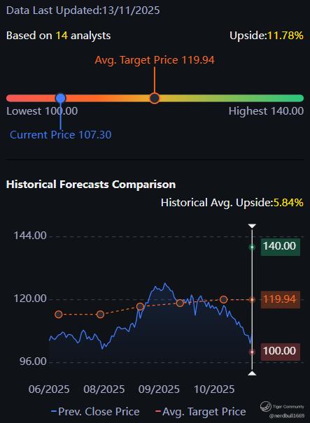 Based on 14 analysts from Tiger Brokers app offering 12 month price targets for NetApp in the last 3 months. The average price target is $119.94 with a high forecast of $140.00 and a low forecast of $100.00. The average price target represents a 11.78% change from the last price of $107.30.