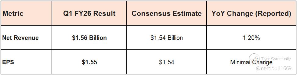 • Net Revenue: $1.69 Billion (a +1.7% YoY increase).