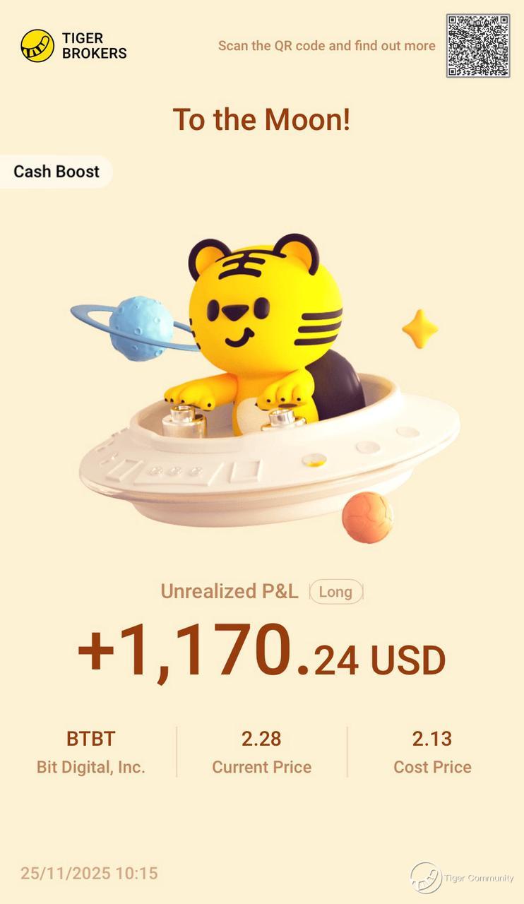 $Bit Digital, Inc.(BTBT)$ 's bitcoin mining play worked out! Riding hashrate growth and BTC exposure. Holding for now~ Contra688 offer was clutch - those Boost vouchers lowered my cost basis perfectly. Free credits really hit different!