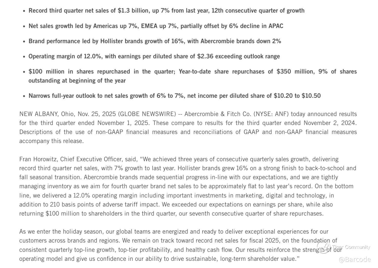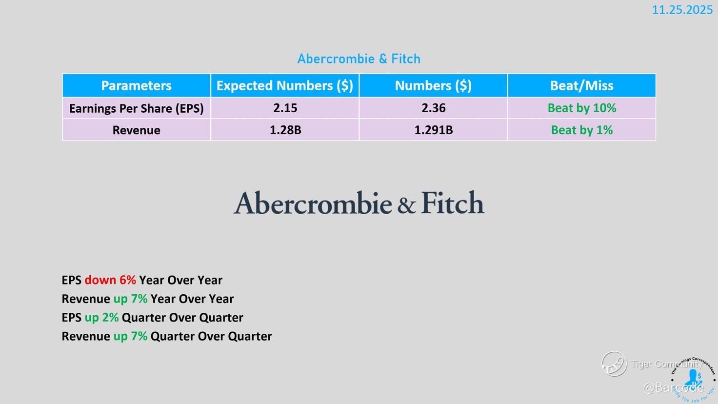 I am confident this was one of the strongest and most strategically important quarters in ANFโs recent history. Hollister carried the portfolio through tariff distortion and management delivered a raise with conviction. The earnings power is real, accelerating, and increasingly insulated by supply chain precision and multi brand diversification.