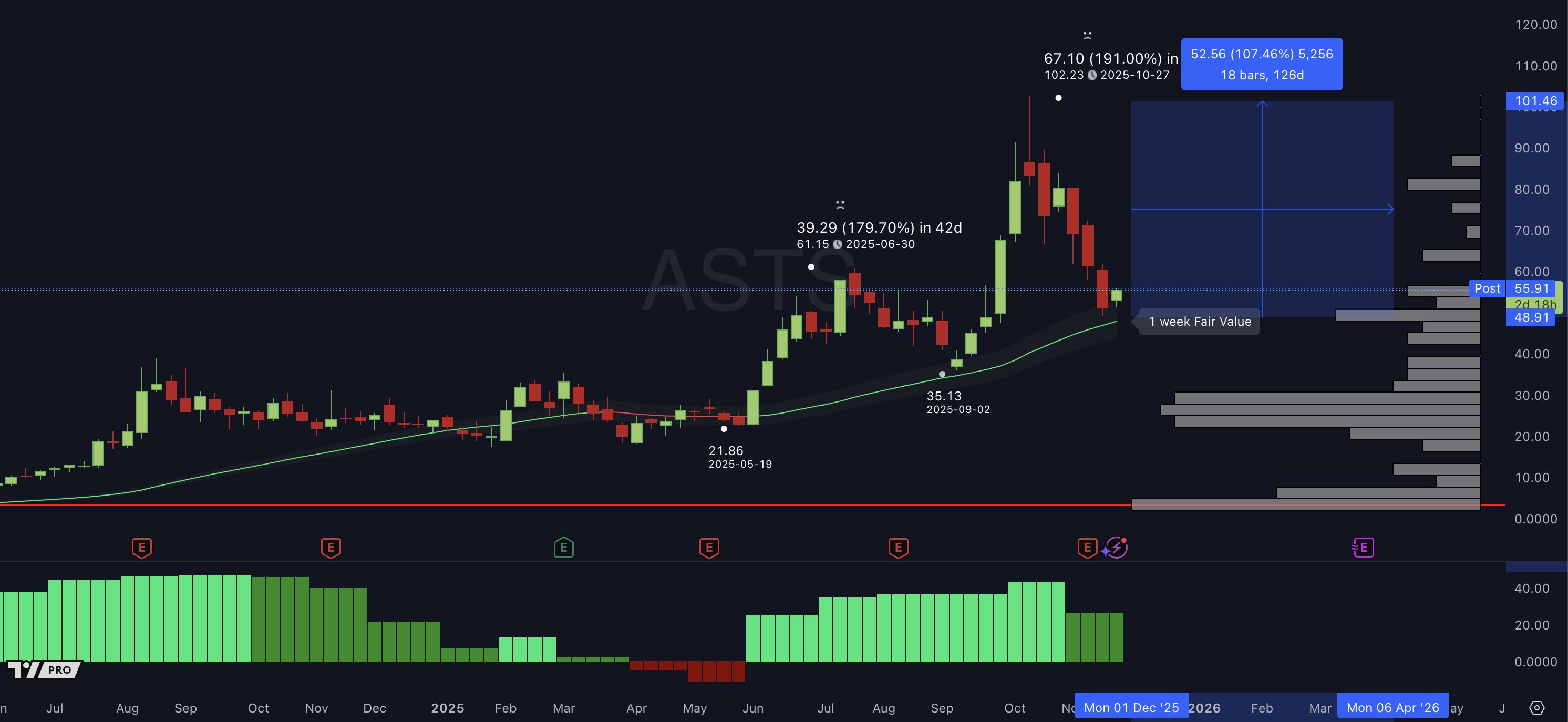 Last 2 times this exact ASTS setup showed up, it ran +170% in under 90 days.