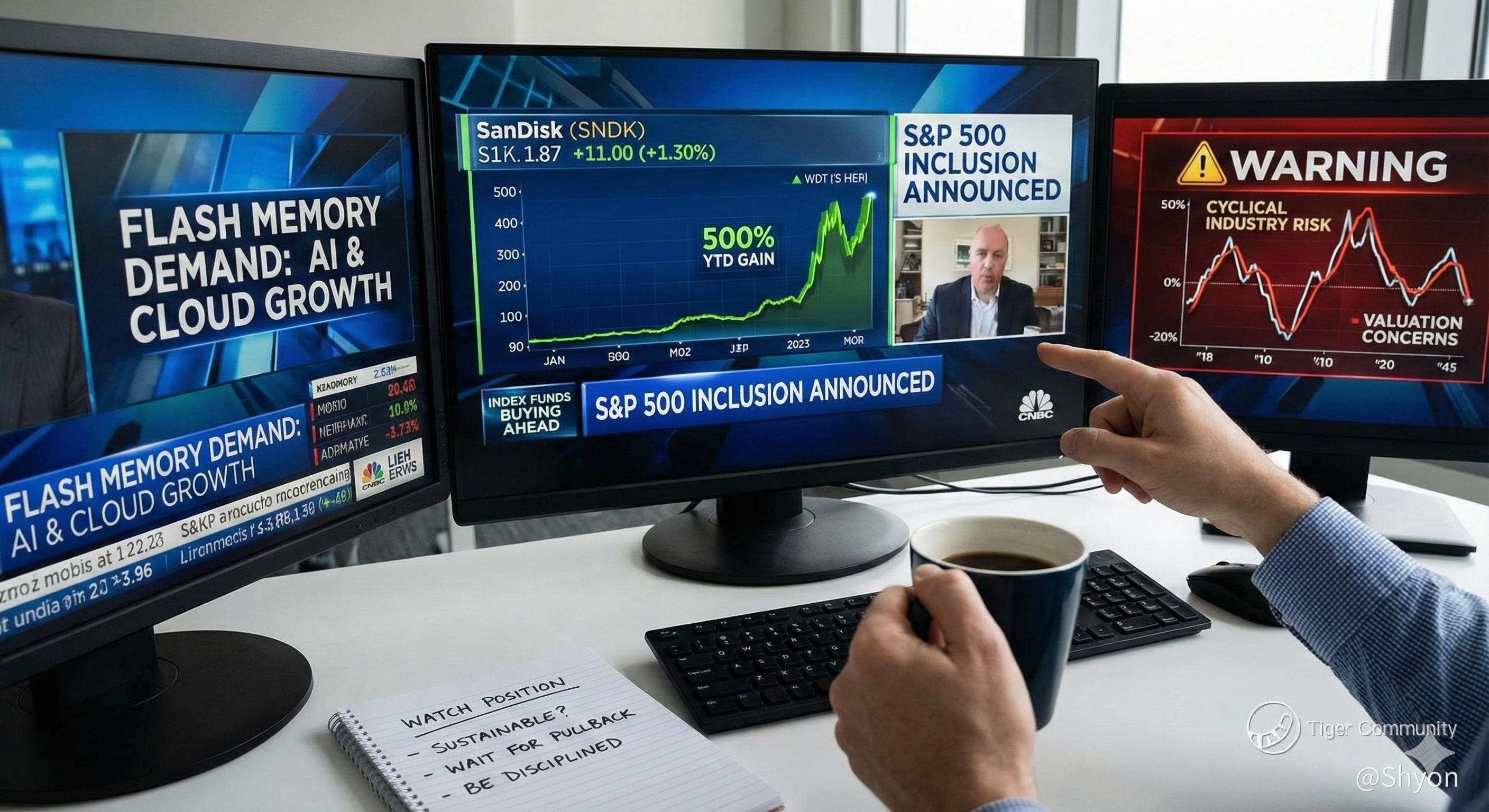 For me, SanDisk $SanDisk Corp.(SNDK)$ being added to the S&P 500 $S&P 500(.SPX)$ is definitely a major milestone, and it explains the sharp after-hours reaction. Index inclusion usually brings passive inflows and more institutional visibility, so I'm not surprised the stock jumped. A move from the SmallCap 600 to the S&P 500 is a strong signal that the company has grown meaningfully in both scale and relevance. Still, after a 500% YTD gain, I need to stay realistic about what's already priced in.