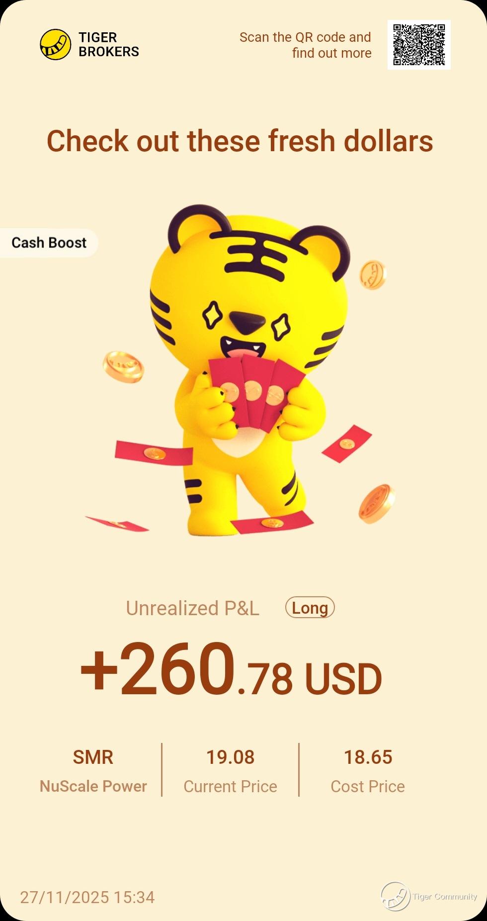 $NuScale Power(SMR)$ NuScale’s small modular reactor narrative got a recent boost—locked in a small gain. My first trade qualified for Contra 688, and the SGD688 voucher arrived promptly. With clean energy policy tailwinds, I’m holding patiently.