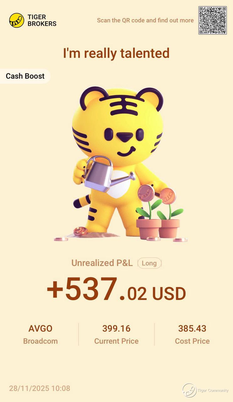 $Broadcom(AVGO)$ cashing in on the AI computing boom! Their full-stack positioning from chips to solutions is finally paying off. Holding for value recognition~ Kicking myself for missing Contra688 - those vouchers create such unfair advantage! Never miss the next bonus!