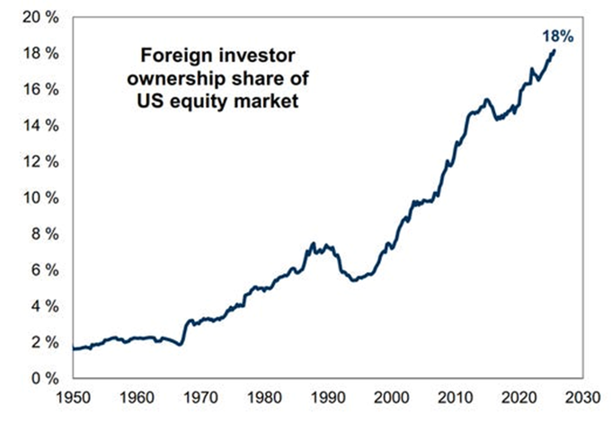3.A major secular tailwind behind US Equities has been the rise and rise of foreign stockholders.
