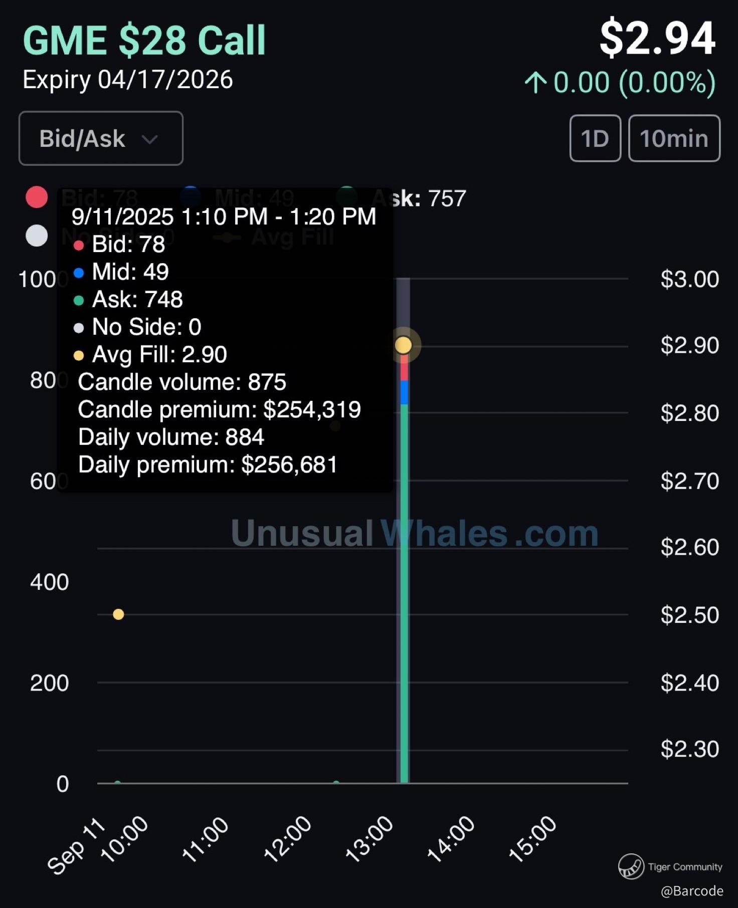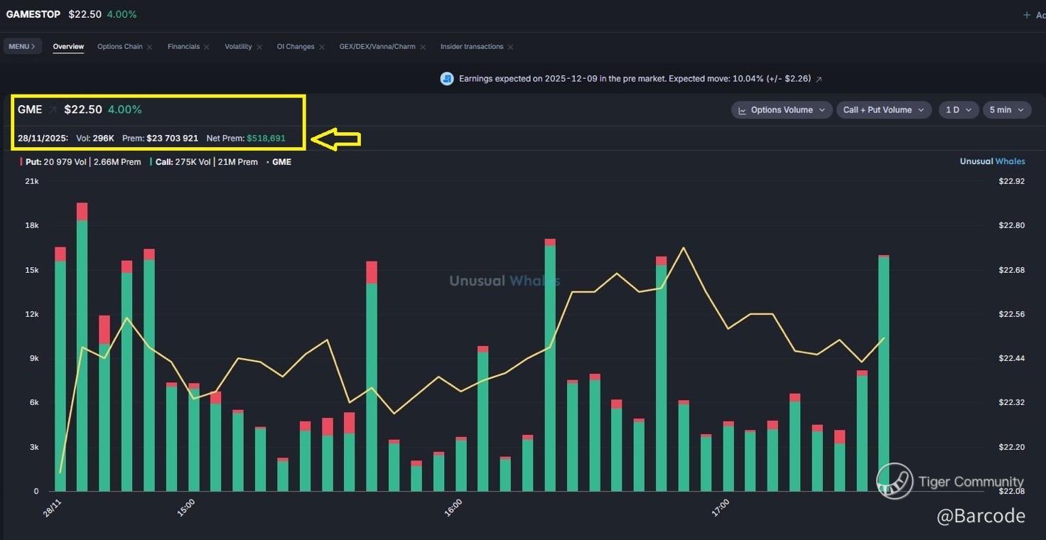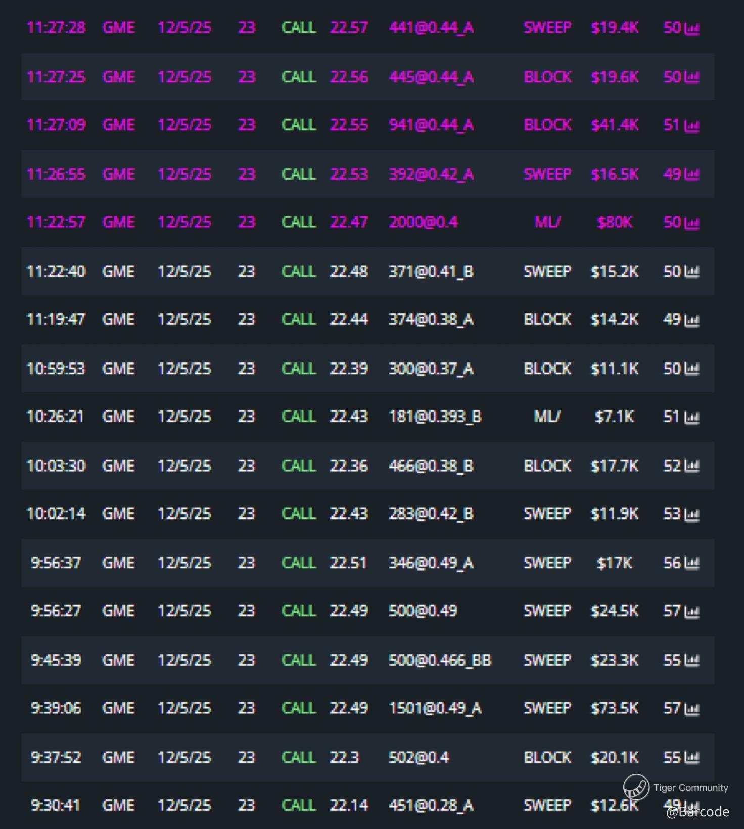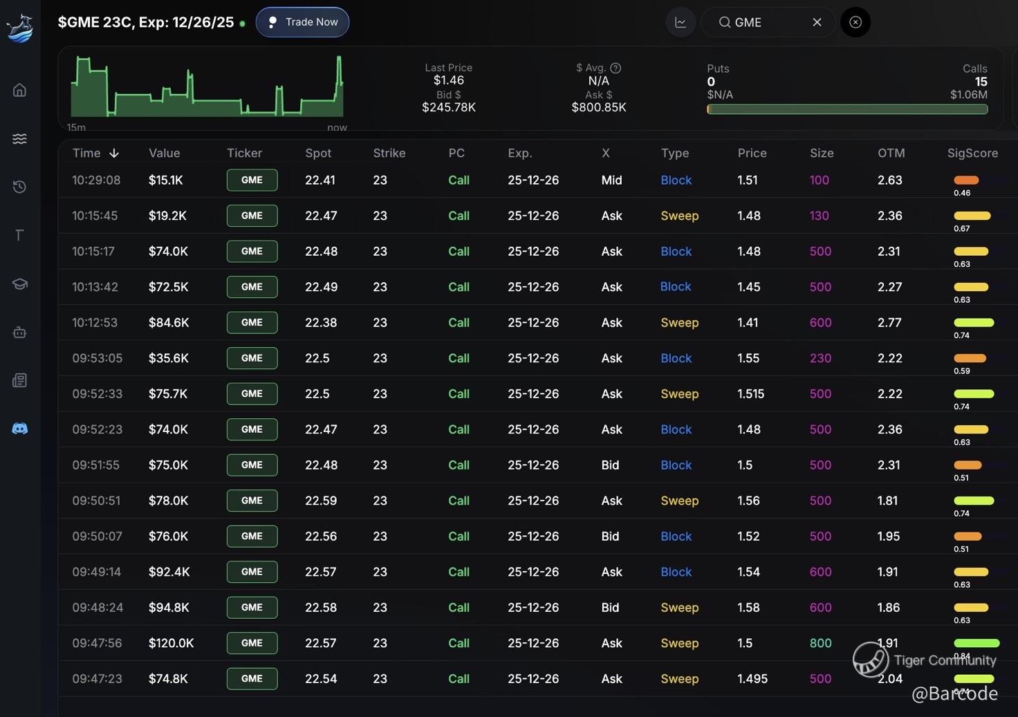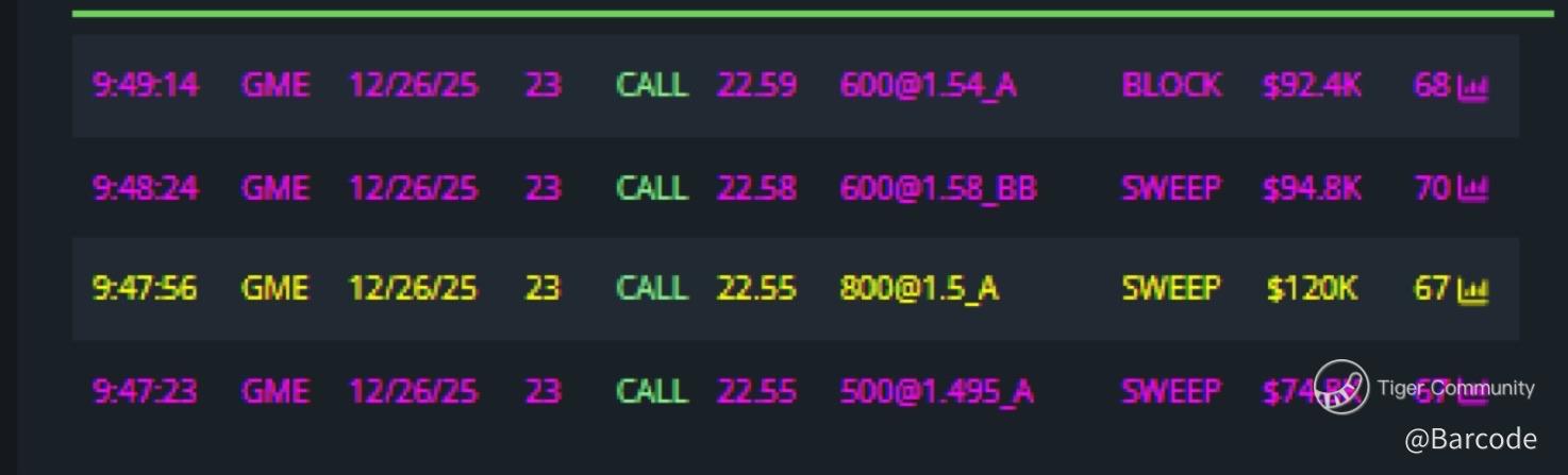 • The GME 23C 26Dec25 contract carries about $1.18M of premium