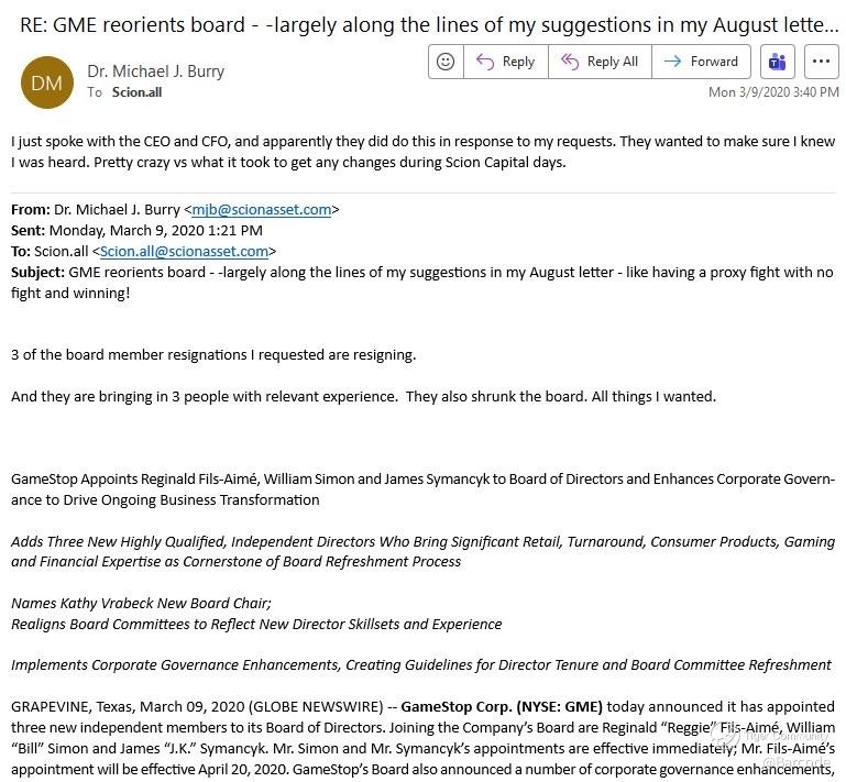 I anchor my thesis in the governance work Burry already did. His 2019 letter attacked director pay, capital destruction and board complacency. Your documents confirm that by 2020 three long tenured directors he targeted were resigning, the board was being reshaped and a new chair plus independent operators were stepping in. He won structural change without a formal proxy war.