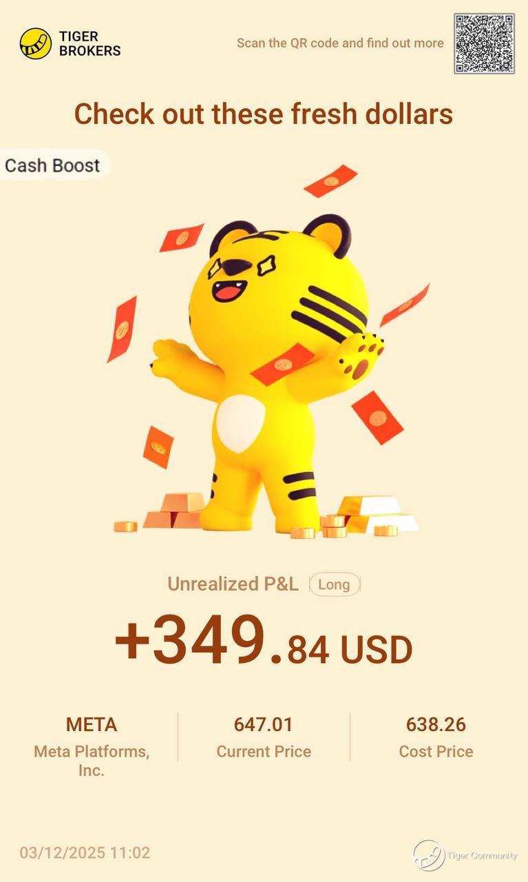 $Meta Platforms, Inc.(META)$ ’s AI-driven ads and Reels monetization beat expectations—booked a small gain. My first trade hit the Contra 688 promo, and the SGD688 voucher landed right away. The platform’s growth thesis remains solid—I’m staying long.