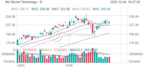 MU closed at $234.16 on December 4th (ET), down -2.23% (-$5.33) from yesterday's $239.49.