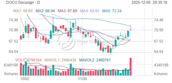 $Docusign(DOCU)$ Gains +0.68%: Digital Agreement Platform Tests Resistance at $71.10, Volume Surges 338%