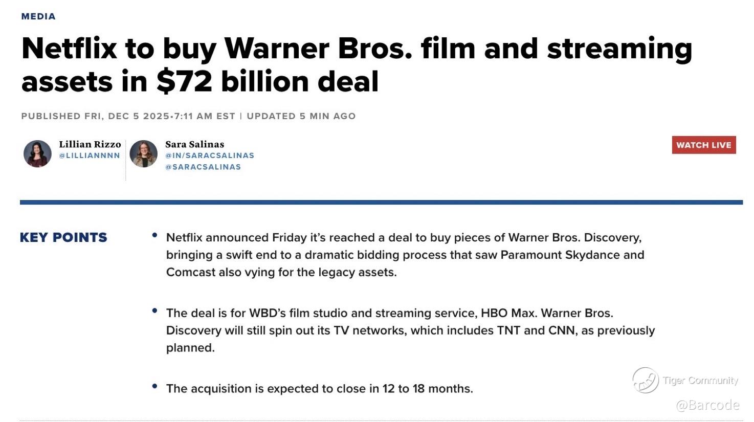 $Netflix(NFLX)$ $Warner Bros. Discovery(WBD)$ $Paramount Skydance Corp(PSKY)$ I have traded through decades of supposed revolutions. Dot-com, smartphones, social, cloud. And every cycle teaches the same lesson. The biggest winners do not ask permission to transform, they seize control. Netflix just did exactly that. This is not a simple acquisition, it is a rerating of the most important media asset on earth: our time and attention.