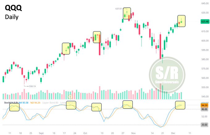 $Invesco QQQ(QQQ)$ : Consolidation (pullback) is likely ahead considering the indecisive candle and the crossover in the oscillator.